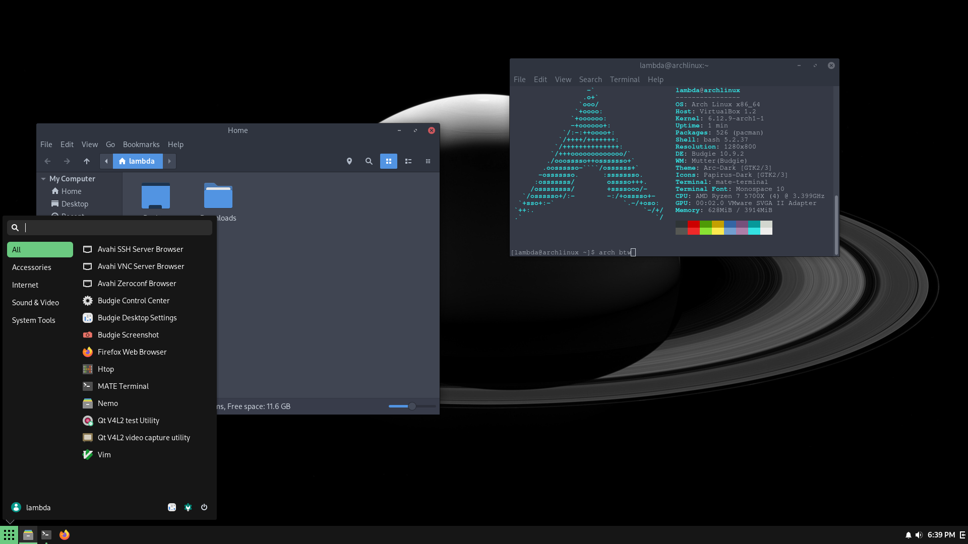 Arch Linux is an extremely barebones and lightweight distro. By default, you get a terminal, a package manager, and a couple utility packages pre-installed, that's it. Arch and all Arch-based distros also have access to a special repo called the Arch User Repository (AUR). It features unofficial community-submitted packages, many of which give you the choice to either compile it yourself or download a pre-compiled binary. If you need a very specific piece of software that you can't find in the normal Arch repo, the AUR probably has at least one version of it. The downside to the AUR is that submissions aren't verified before being published, so it's possible for someone to do something malicious with it before they're caught. If you're new to Linux, you should probably stay away from this distro until you're ready to go down the Arch rabbit hole.