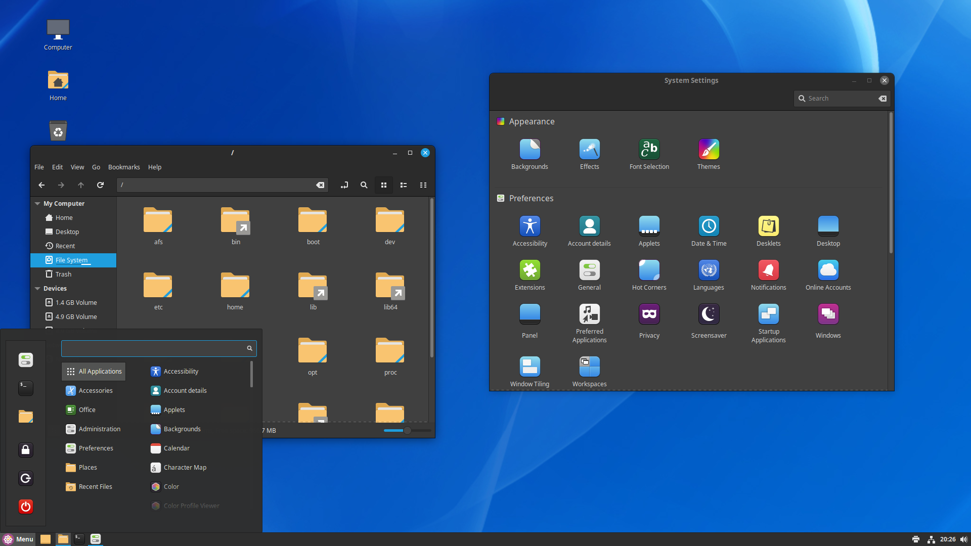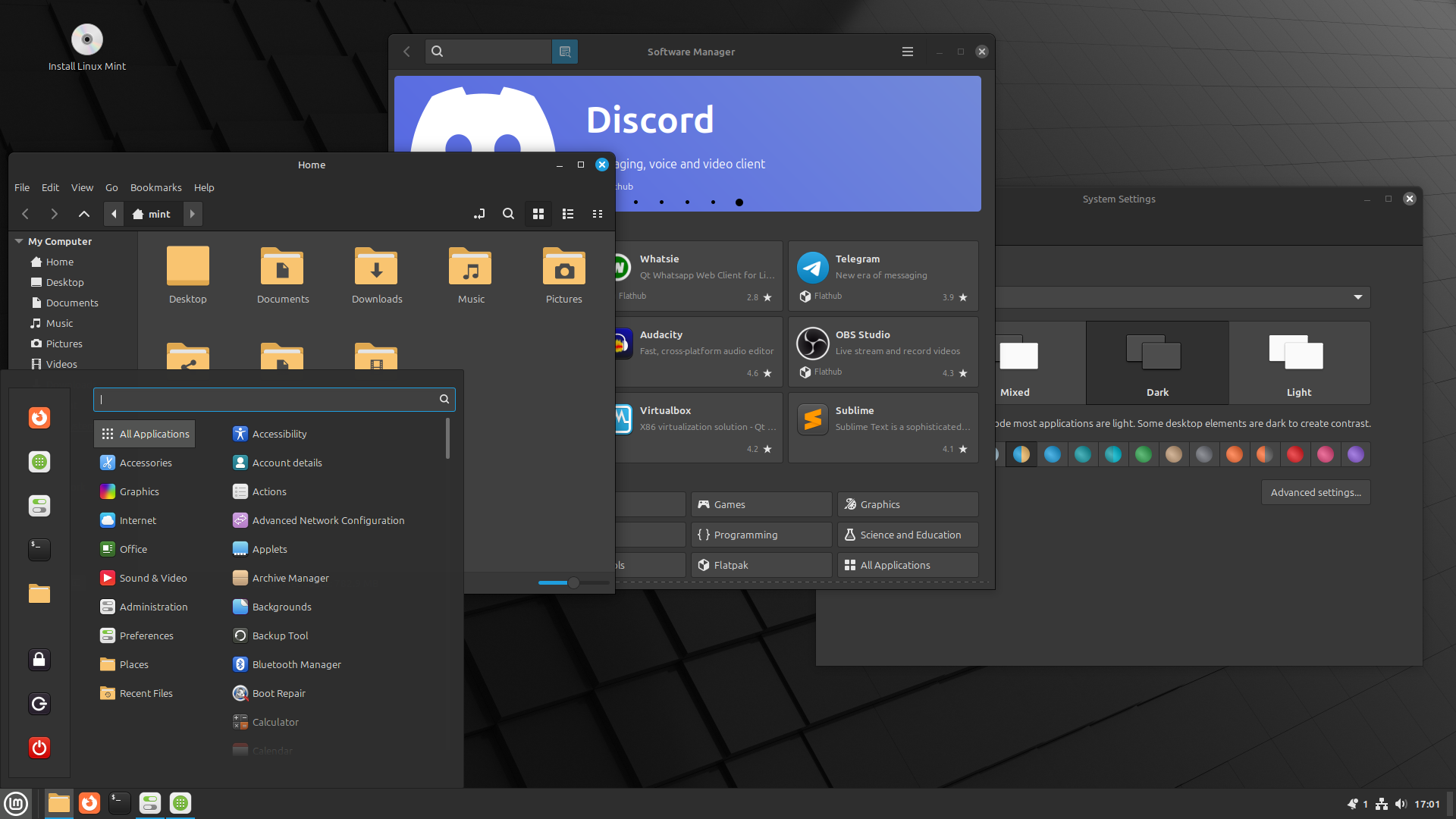 - Default desktop environments: Cinnamon, GNOME, KDE Plasma, Xfce, LXDE, Lxqt, MATE