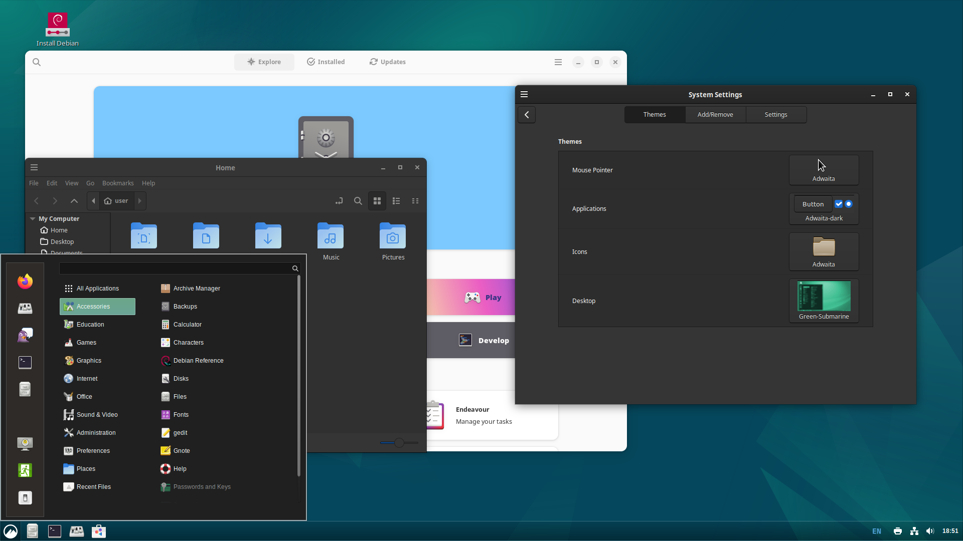 - Default desktop environments: GNOME, KDE Plasma, Cinnamon, Xfce, MATE