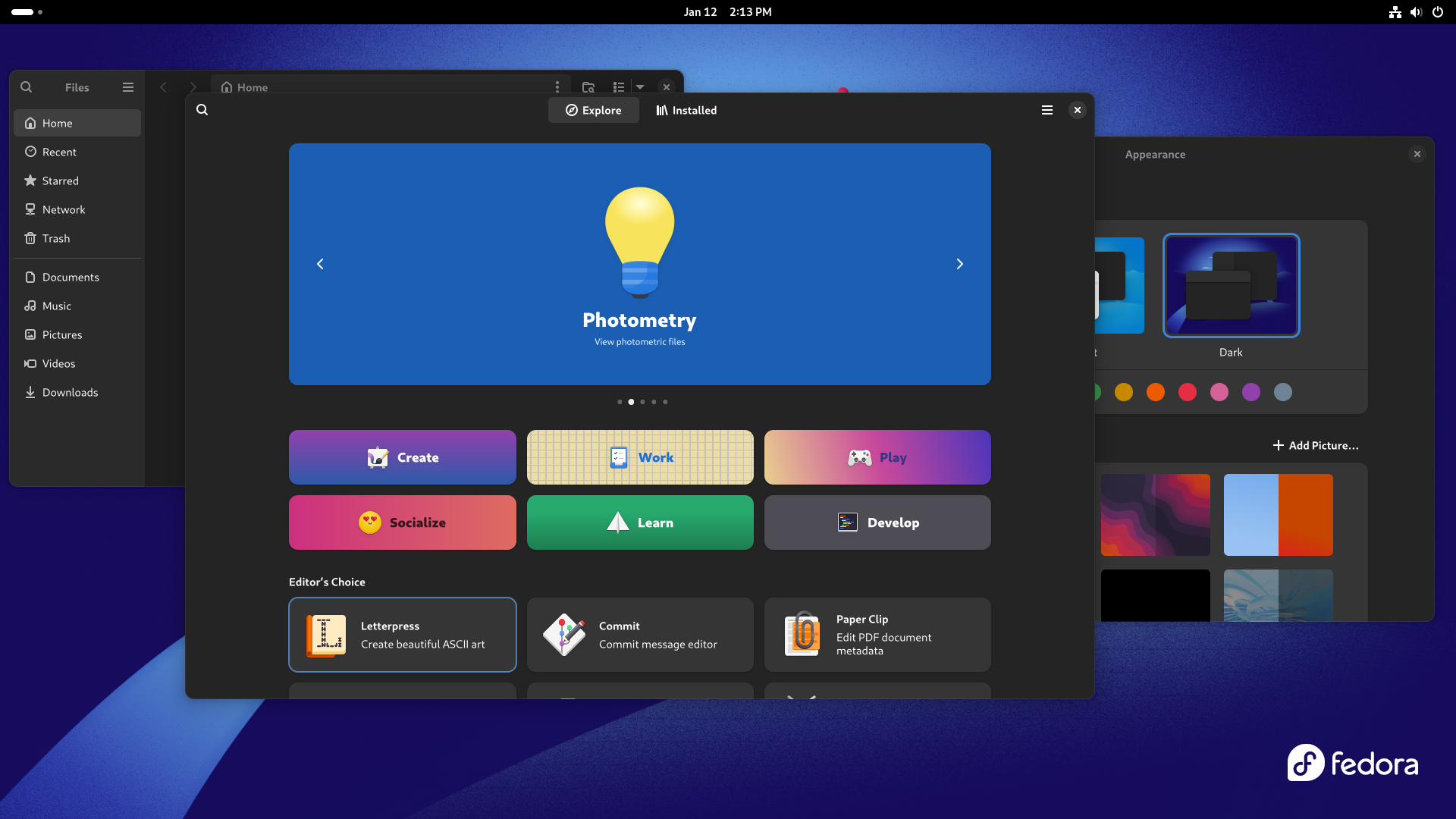 Fedora is also similar to Ubuntu but with a much larger focus on open source software, privacy, and workloads. It's backed by Red Hat, creator of RHEL, so some functionalities that are commonly seen in the enterprise ecosystem such as virtual machines and containers are included by default. Most beginners should avoid it unless they are only going to be using open source software.