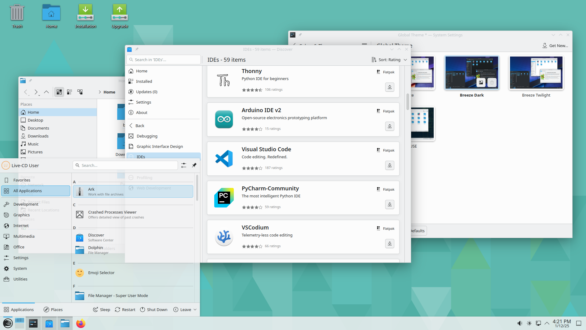 - Default desktop environments: KDE Plasma, Xfce, GNOME, Cinnamon